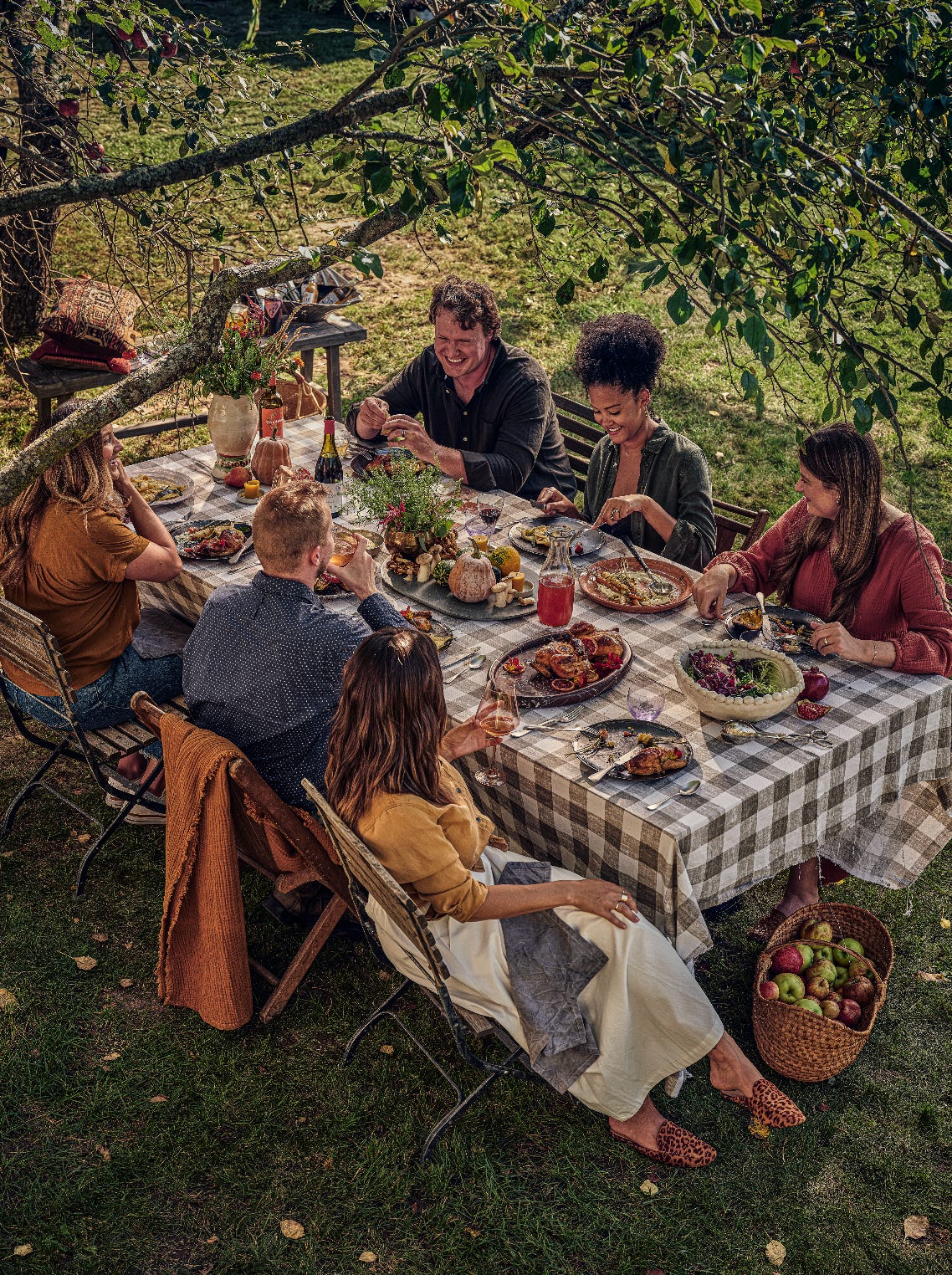 I started hosting dinner parties under the apple trees in my home, creating this beautiful meal that brought guests into a full experience. I had the privilege of doing two photoshoots beneath these apple trees to capture the beauty of these events - I am an art director by day, specializing in food photo and video, and am honored to play and create on the weekends with incredibly talented people.