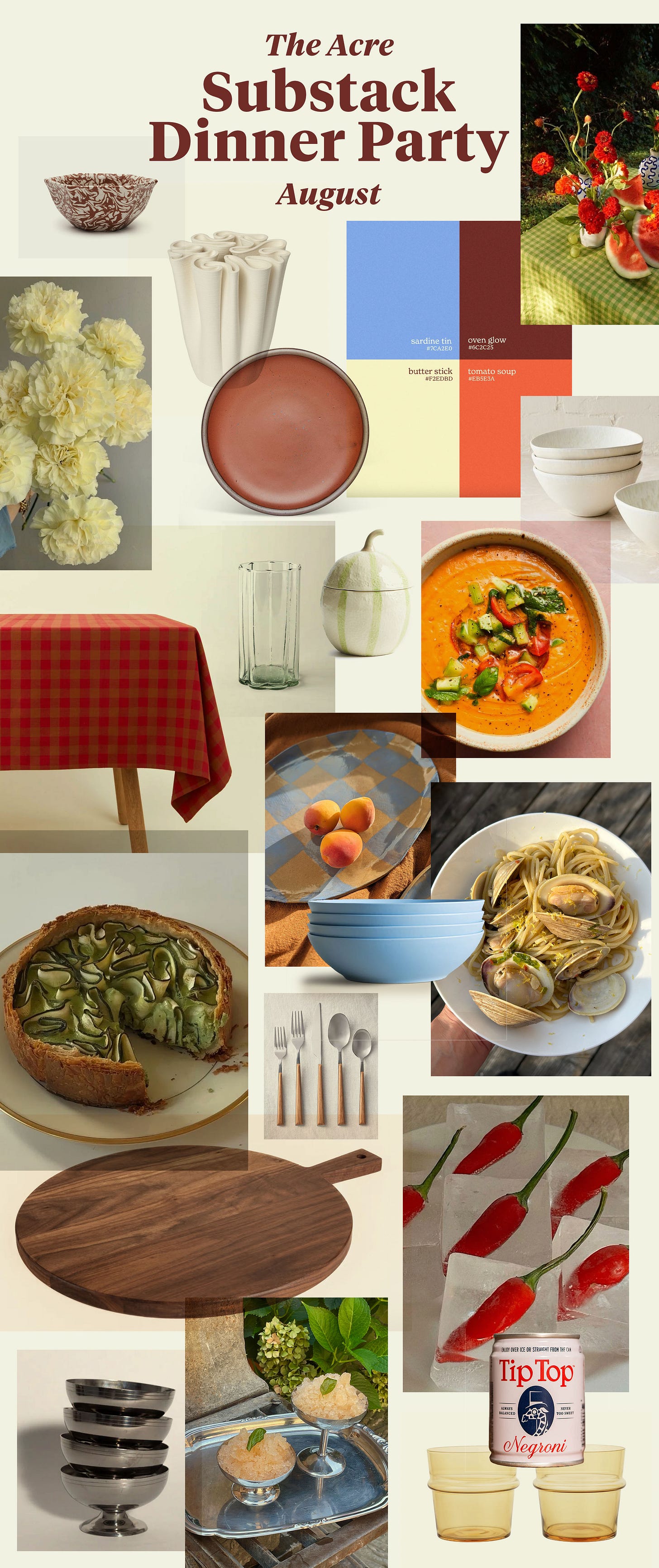 Each month I will pull together my curation of what I am loving into a themed dinner party, with tableware and additional ideas to round it out. This is going to be so fun to see how these evolve over the year. Join me at The Acre Substack Dinner Party August.