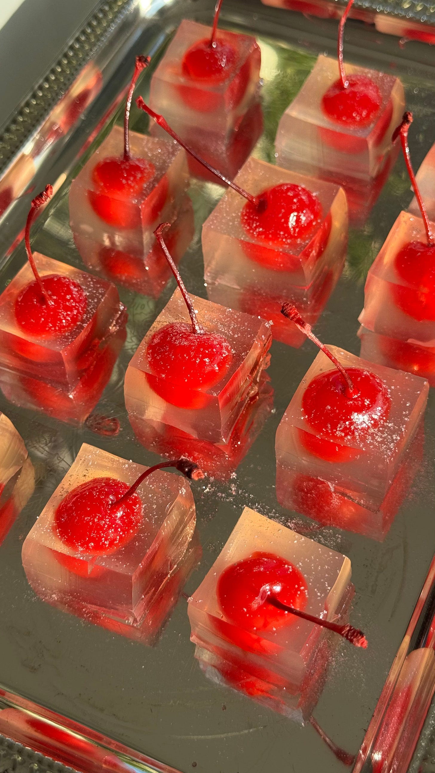 I would also serve my favorite bubbly rose Piazza Grande as a light counter to the dips. I also chose NA Apertif to create a non-alchoholic spitz, a great sip without the booze. Any lastly, for something very playful and fun, I have added the sunday stack Lychee Martini Jello Shots - Cheers!