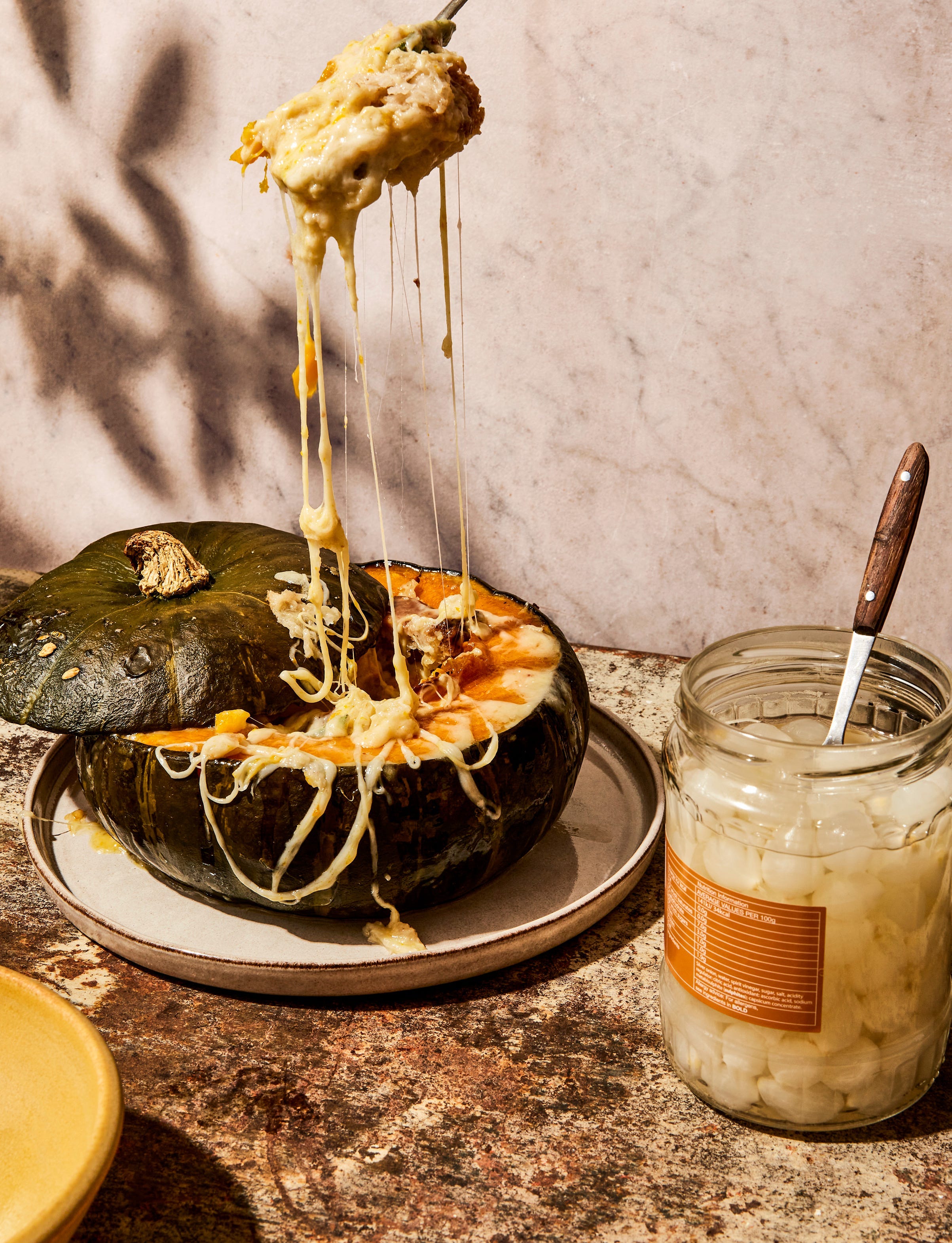 Whole Pumpkin stuffed with Beer & Cheese Fondue