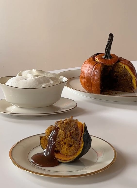 My garden is the greatest source of Thanksgiving inspiration as October begins to fade. Squash have moved indoors, filling windowsills with their squat bottoms, shades of dusty blue, buffed beige and flame orange. I dream of what delights I could turn them into for Thanksgiving, and find any time I am scrolling Substack for ideas, I halt in my tracks for a squash-y delight.