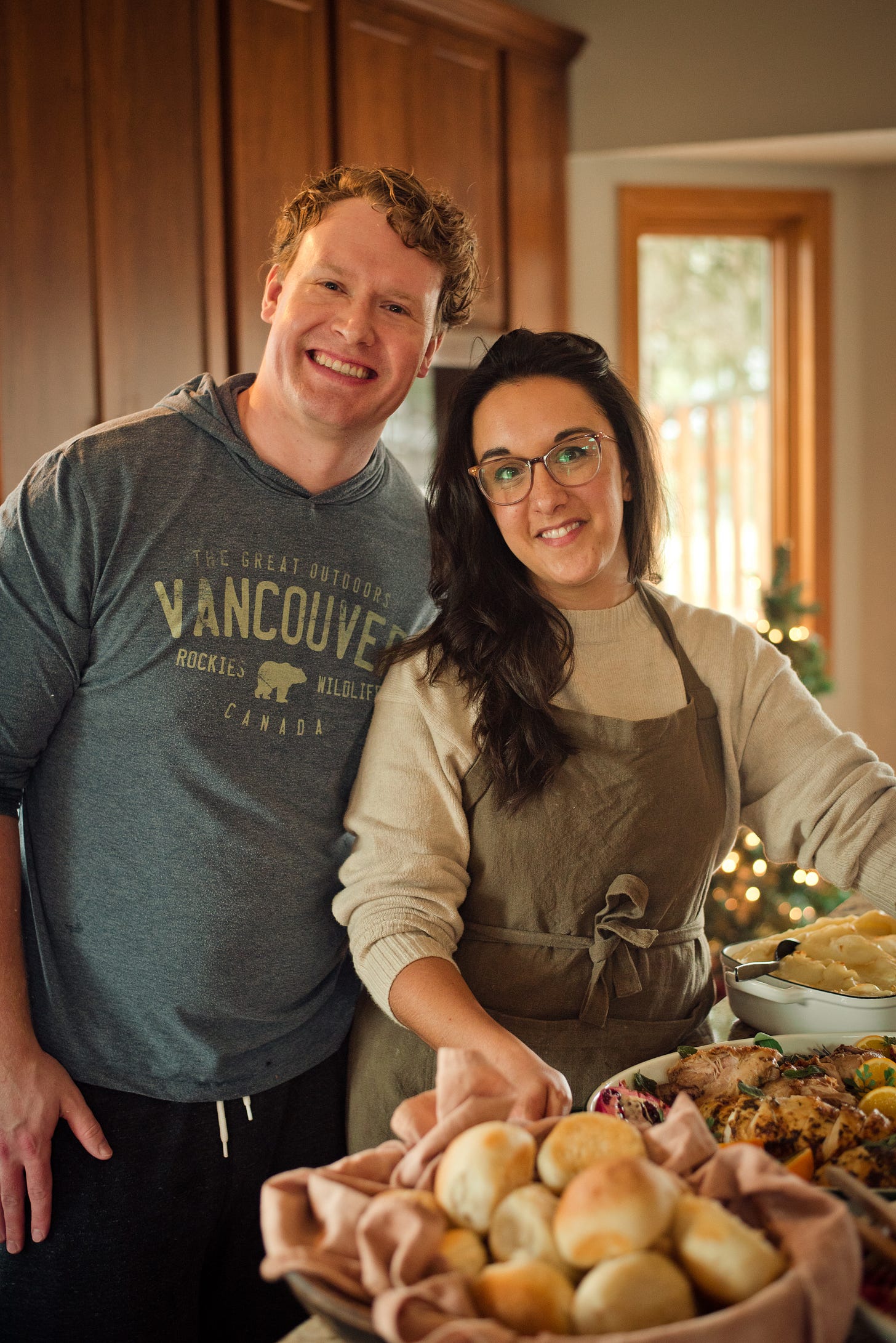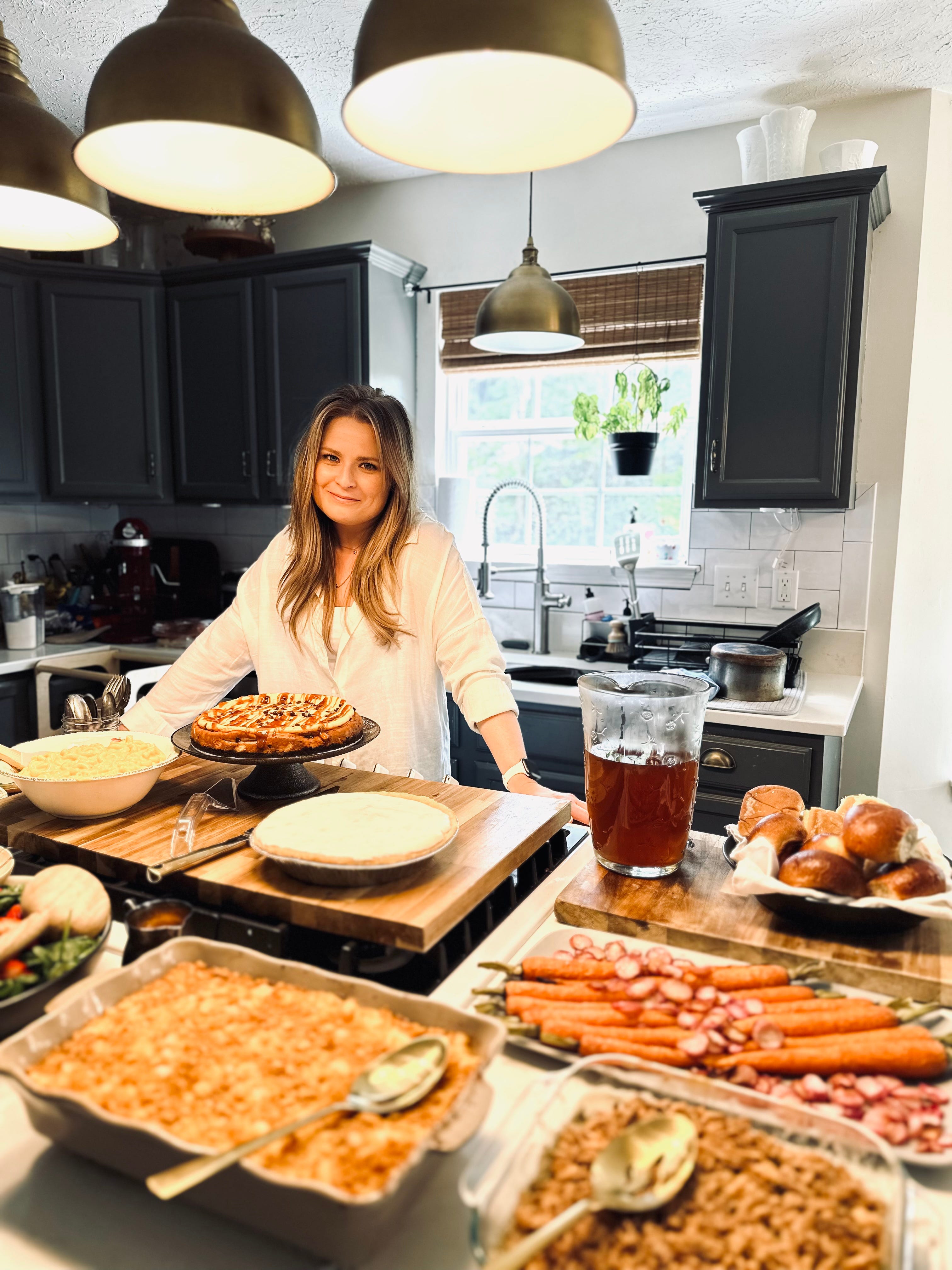 (First image) Leslie in her kitchen on Thanksgiving (Second image) In my own kitchen on Thanksgiving