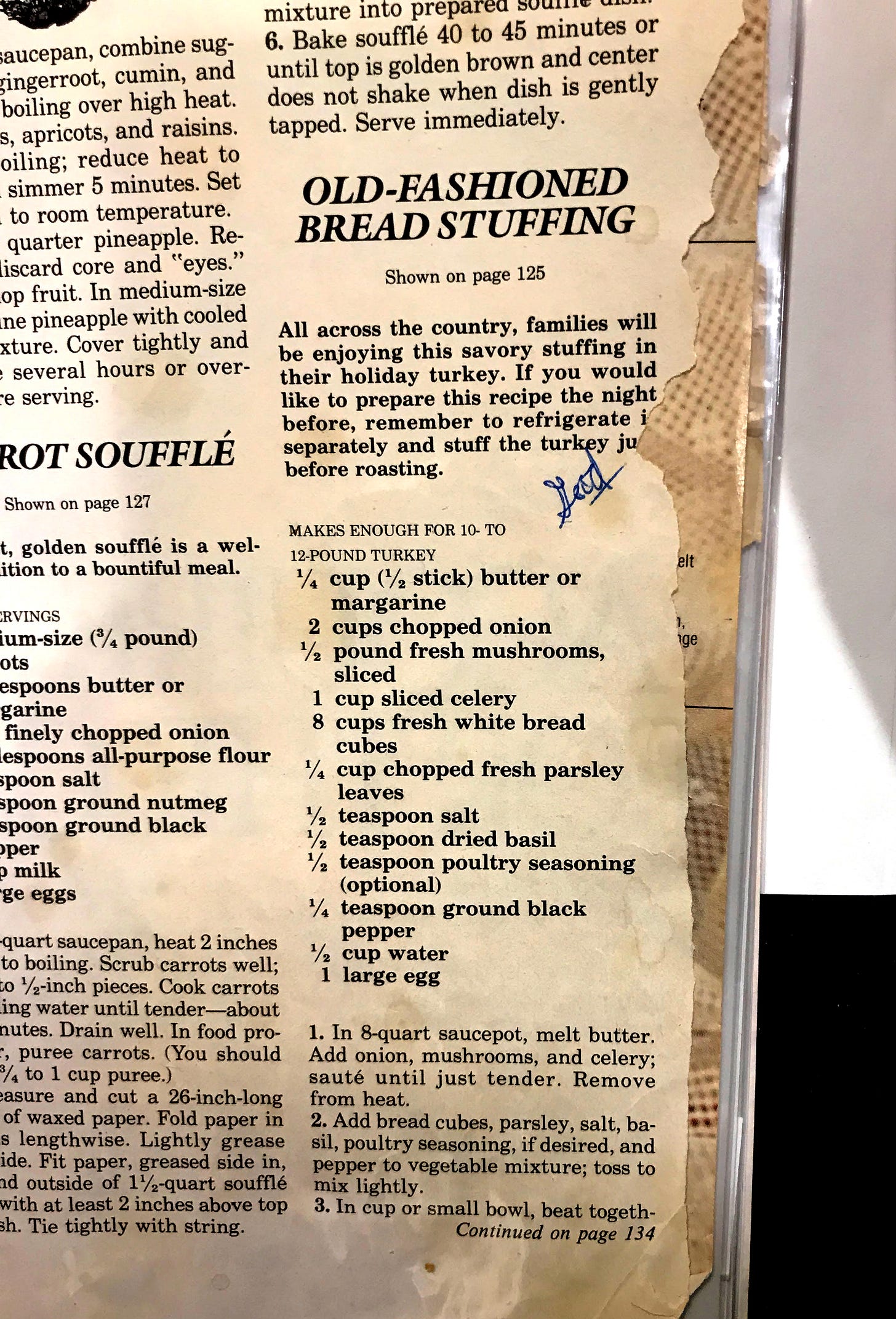 A story on friendship and shared tradition, ending with a family stuffing recipe